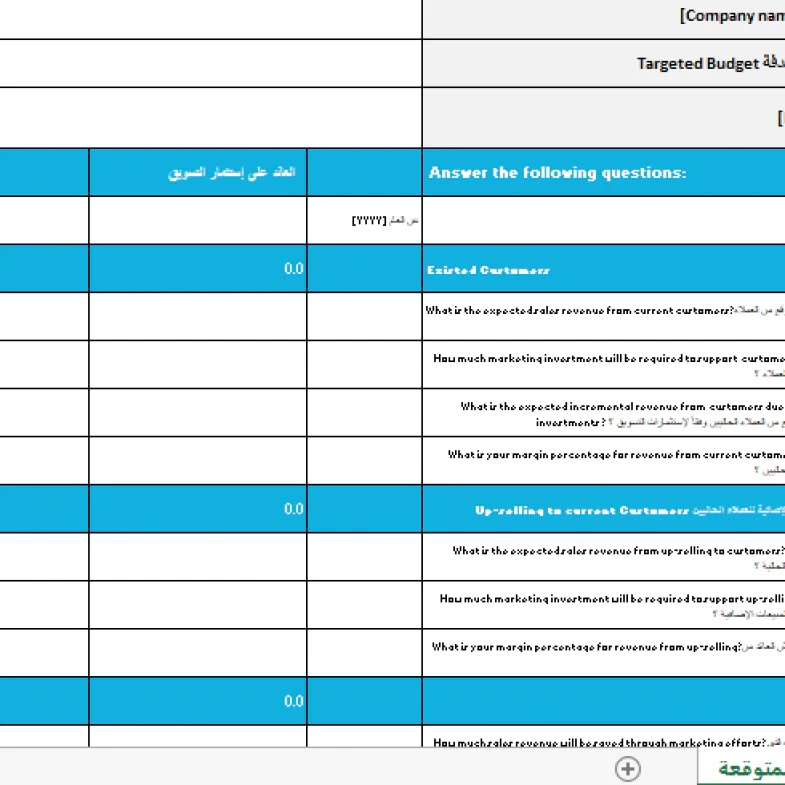 يستخدم هذا النموذج لجمع المعلومات المتعلقة بالعوائد على الاستثمار للأنشطة التسويقية المختلفة للمنشأة للإسترشاد بها في إعداد الميزانية التسويقية.