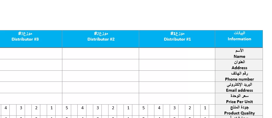 لإدارة علاقات مع الموزعين، هذه النماذج توفر طرق سهلة لحفاظ البيانات، للمقارنة بين الموردين/الموزعين ، و إدارة المخزون
