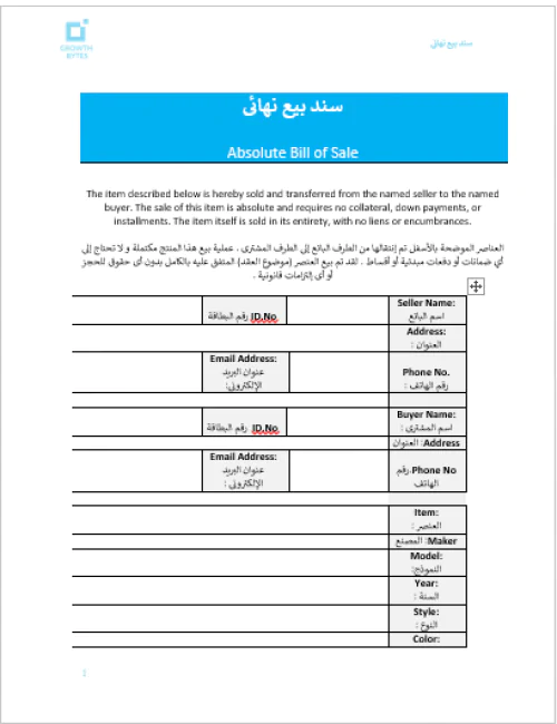 يُستخدم نموذج سند بيع لبيان المنتج أو المنتجات التي تم بيعها، ويُمَثِّل تأكيدا لإتمام عملية البيع وفقا لما اتفق عليه بين البائع  والمشتري.