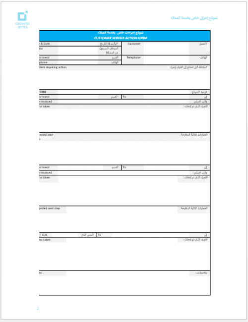 نموذج إجرائي خاص بخدمة العملاء (مستند مجاني)
