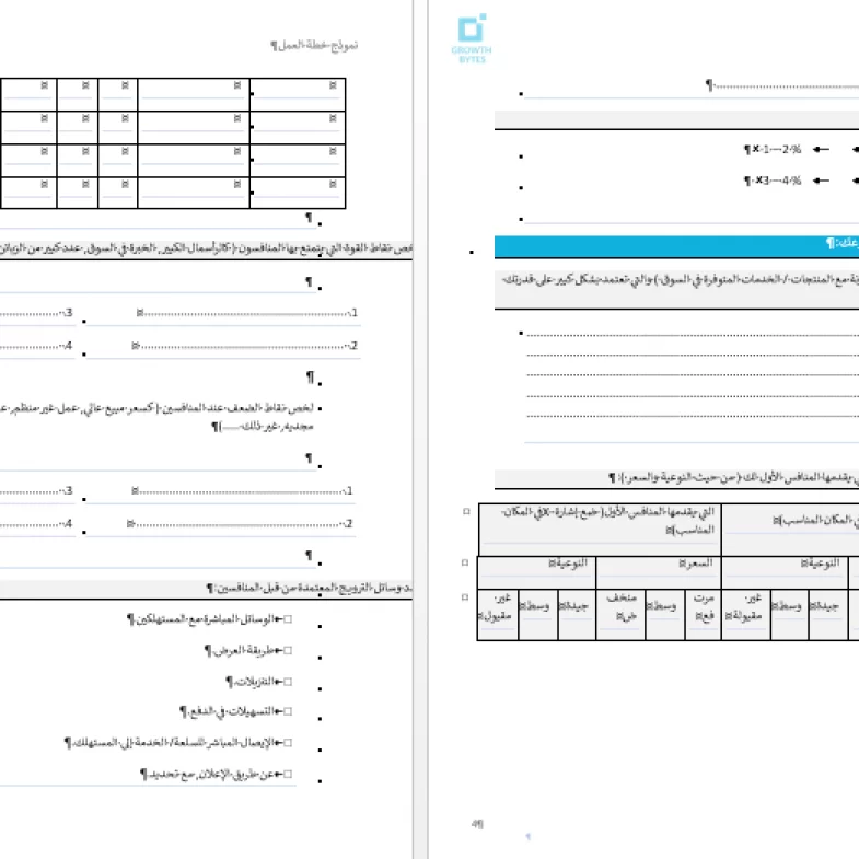 نموذج خطة عمل مشروع تستخدم في حصر المنافسين ومنتجاتهم ونوعياتها وجودتها (مستند مجاني )